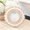 Scalloped wooden picture frames are beautifully crafted frames with a decorative edge that features gentle, curved, or wave-like patterns, resembling the shape of scallops or seashells. These frames are typically made from high-quality wood, giving them a natural, warm, and rustic aesthetic. The scalloped detailing along the borders adds an elegant touch, making them perfect for showcasing cherished photographs, artwork, or other mementos.