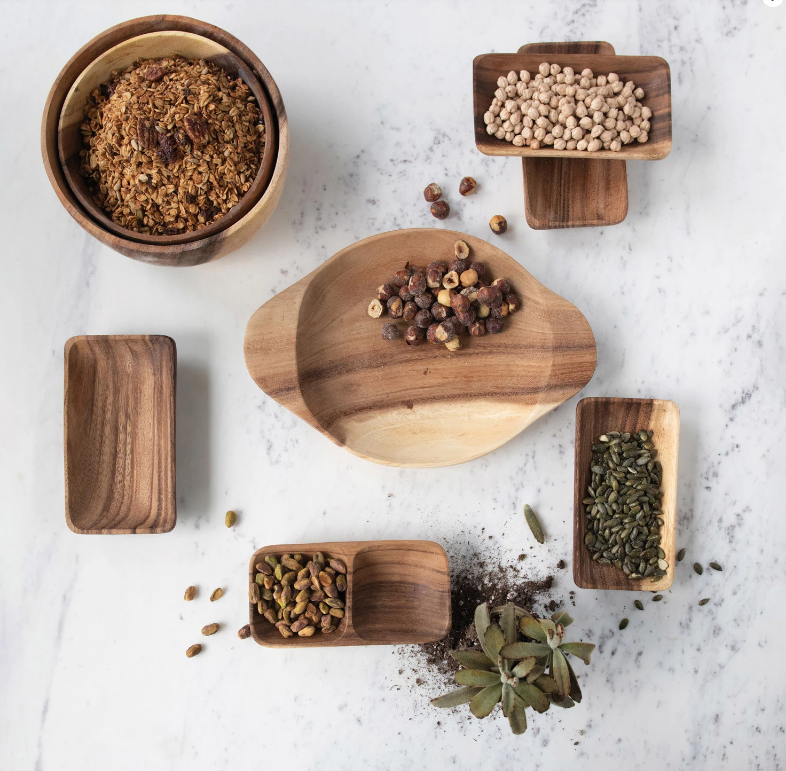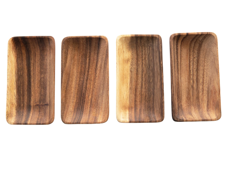These everyday trays are perfect for serving friends or family. Made out of acacia wood, these come individually and have a casual rounded rectangular shape. Perfect for displaying foods or small decorative accents on display.