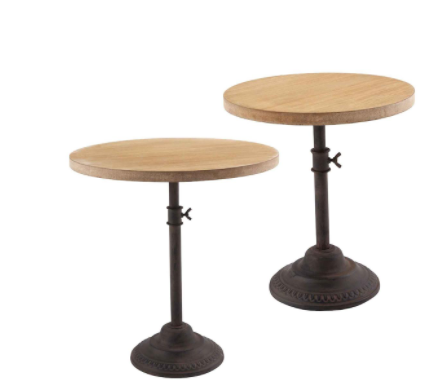Wood server features cast iron adjustable pedestal.