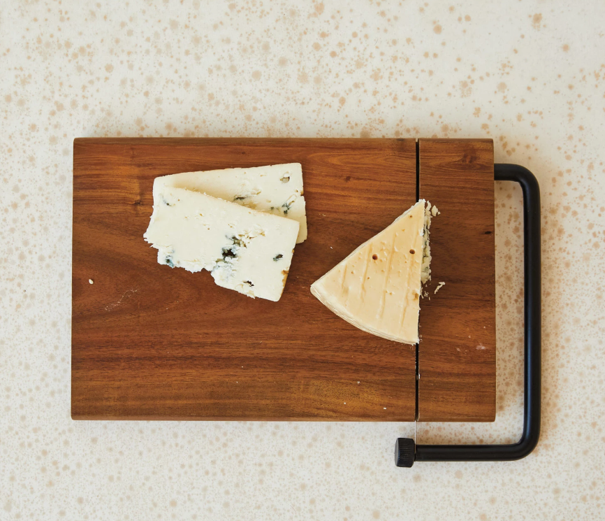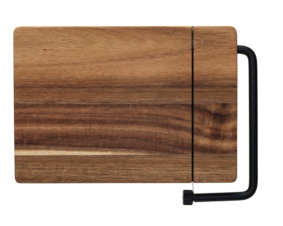 Slice cheese with style and ease with this natural acacia wood and stainless-steel cheese slicer. This cheese slicer is crafted from acacia wood, a natural material that is durable and beautiful. It has a natural color that varies with each piece, creating a rustic and cozy look. It also has a stainless-steel cutting wire that can cut through any type of cheese with precision and smoothness. It has an ergonomic handle that makes it easy to use and control. It also has a hole for hanging that makes it easy to store and display. It can match any style, from farmhouse to industrial, with its natural material and sleek design. It can also add a touch of French country or modern flair to the table with its natural and black colors. It is also easy to clean and store, making it a convenient and versatile accessory for the home. This cheese slicer is a perfect gift for oneself or someone special who loves cheese and appreciates quality. Order today and enjoy the elegance and quality of this natural acacia wood and stainless-steel cheese slicer.