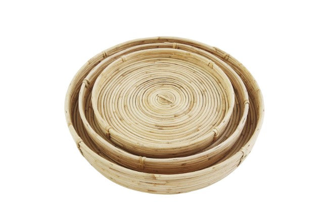 Nested hand-woven cane trays in 3 sizes: small, medium, & large! How cute are these?!?! perfect for any home decor design!! So cute!!