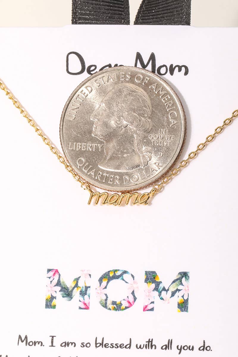 An extremely unique must have gold dipped necklace has a beautiful dainty mama pendant necklace design. A stunning must have for the Spring season! Perfect for a mothers day, birthday, valentines day, easter or christmas gift!