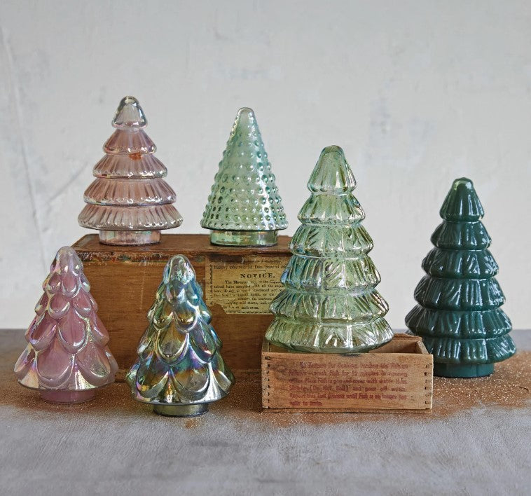 Embossed Mercury Glass Tree has three styles with four iridescent colors! So very cute, pretty and colorful!