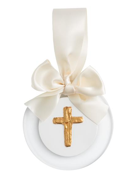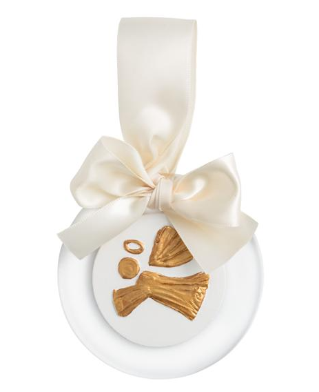 This exquisite ornament features a beautifully crafted acrylic disc that showcases a layered plaster icon, meticulously adorned with a luxurious gold foil finish. The intricate design captures the essence of timeless artistry, making it a perfect keepsake or gift. Measuring 3 1/2 inches in diameter, it is the ideal size to stand out on any Christmas tree or decorative display.