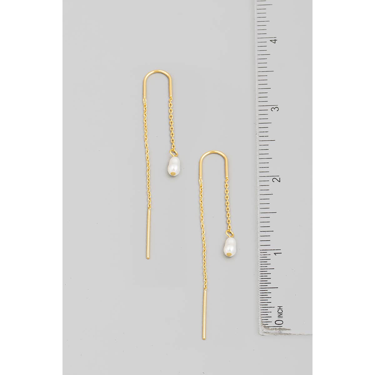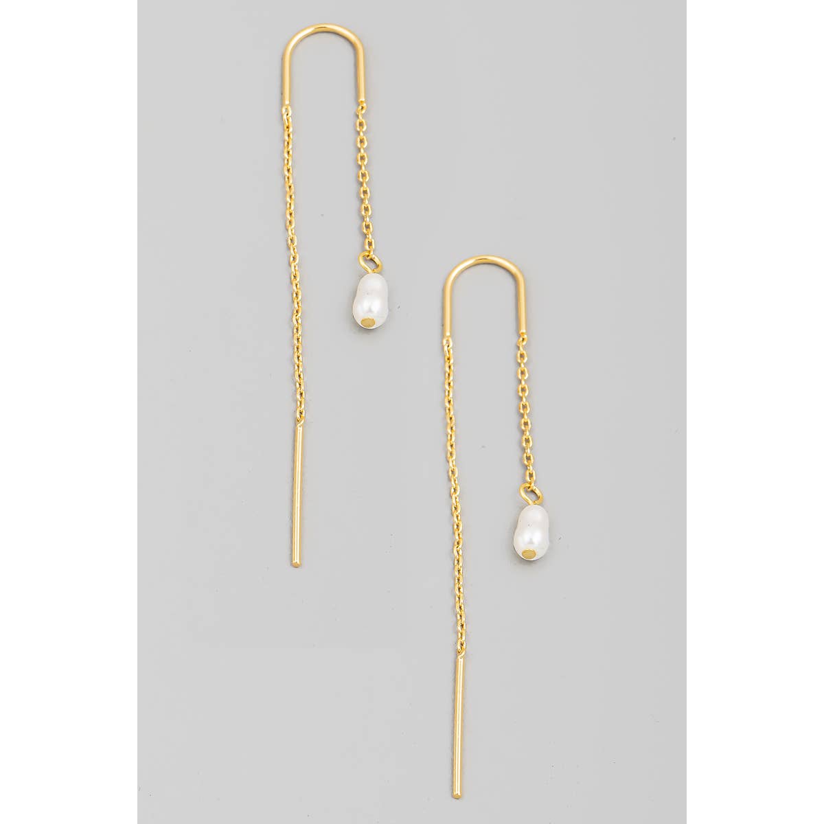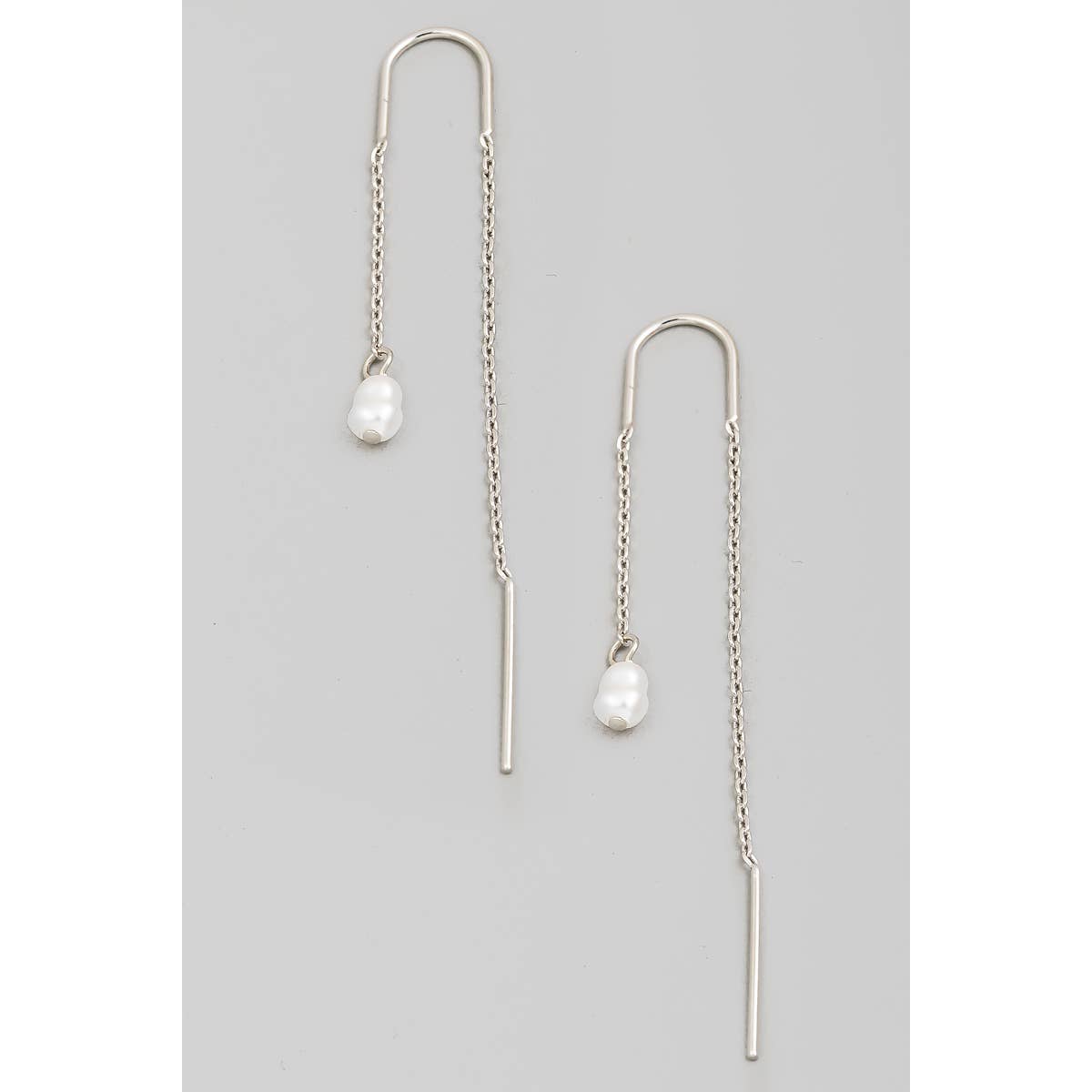 This pair of earrings introduces a unique pearl bead chain threader earrings style. Unveil modern elegance with this subtly intricate accessory.