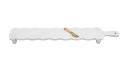 The Scallop Long Board Set is an elegant serving set featuring a sleek, elongated tray with a scalloped edge design. Paired with a matching spoon, it's perfect for serving condiments, dips, or small appetizers in a stylish and refined way.